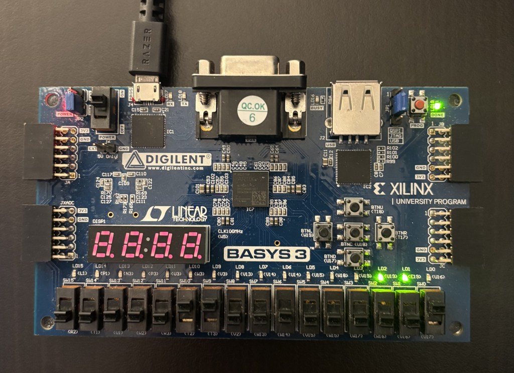 The final step in this process was deploying to the physical BASYS3 board connected to my runner. Surprise surprise, I had some trouble with this one. First, I tried to use USBIPD to run USB-over-IP with WSL and access the physical USB device from within WSL. I’ll spare you the details, but WSL critically failed after install and I gave up on trying to make that work.